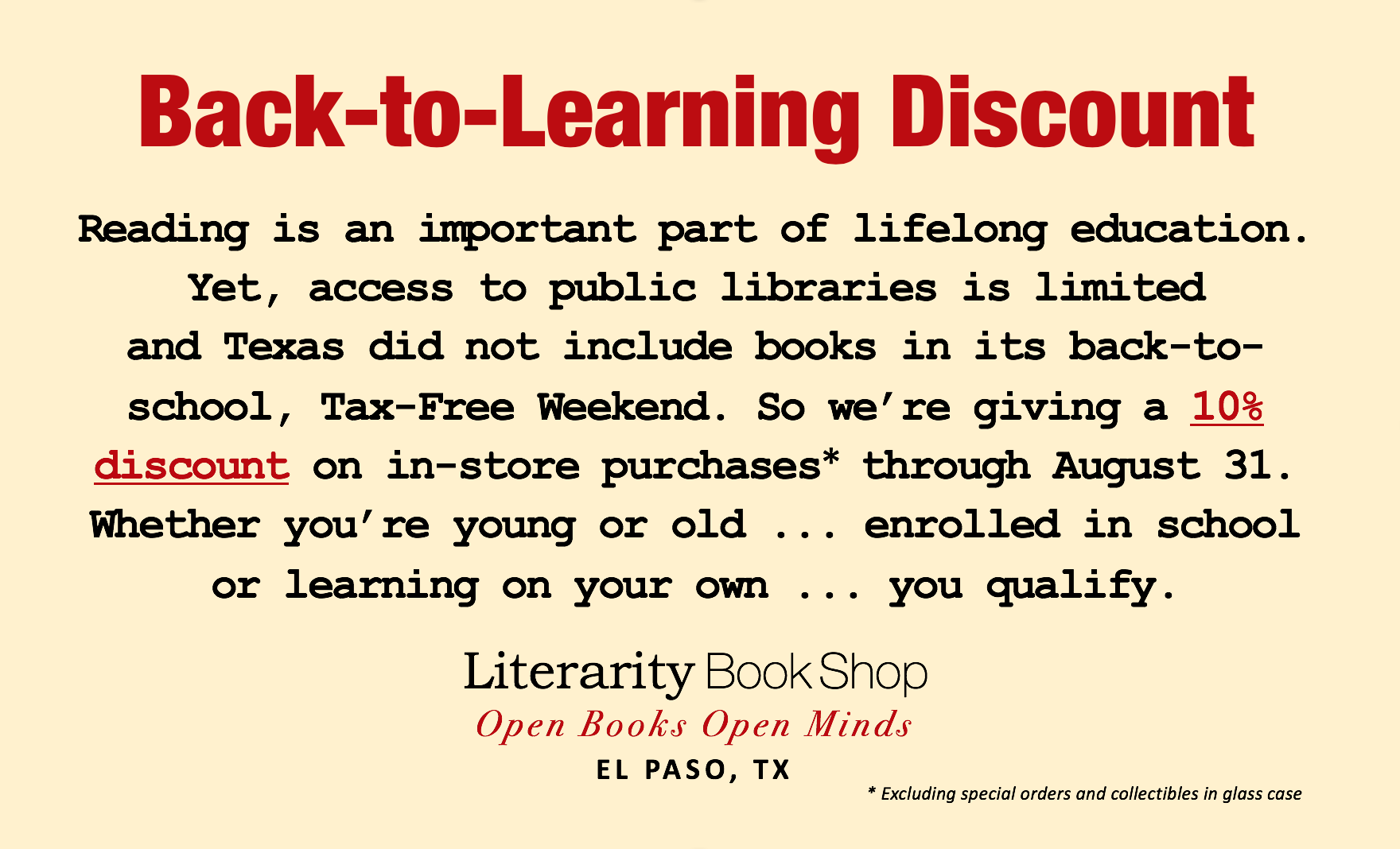 Literarity Book Shop On Twitter Books Are Excluded From The Texas Tax Free Weekend So We Decided To Fix That Problem Ourselves We Re Offering A 10 Back To Learning Discount Which Is Actually More Than